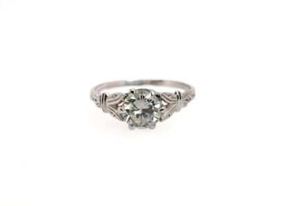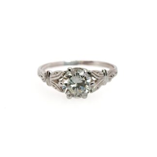 The platinum band is artfully crafted: openwork leaf ornaments, inspired by Art Deco and floral Art Nouveau, lend the ring romantic grace and a touch of vintage charm. Despite the fine details, the design language remains clear and balanced – a harmonious interplay between structure and reduction, between classic and modern.